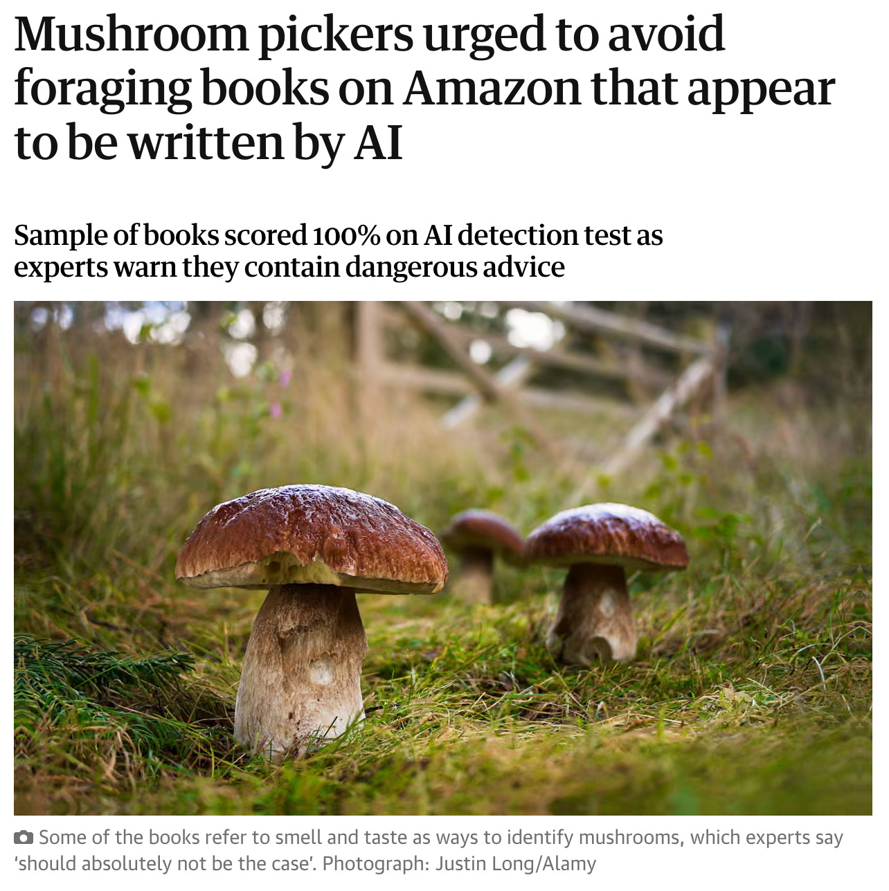 Amazon’s Kindle Direct Publishing saw a surge in AI-generated foraging guides. Books containing life-threatening advice. Misidentifying lethal species as edible. Authors that were non-existent personas created by AI to feign expertise.