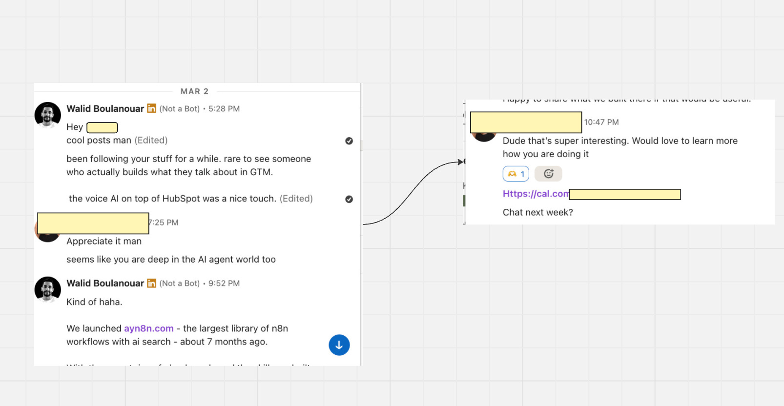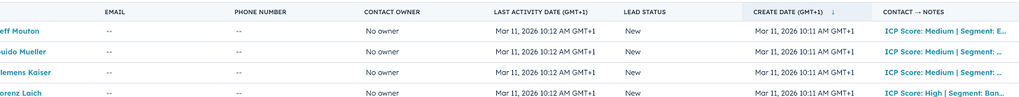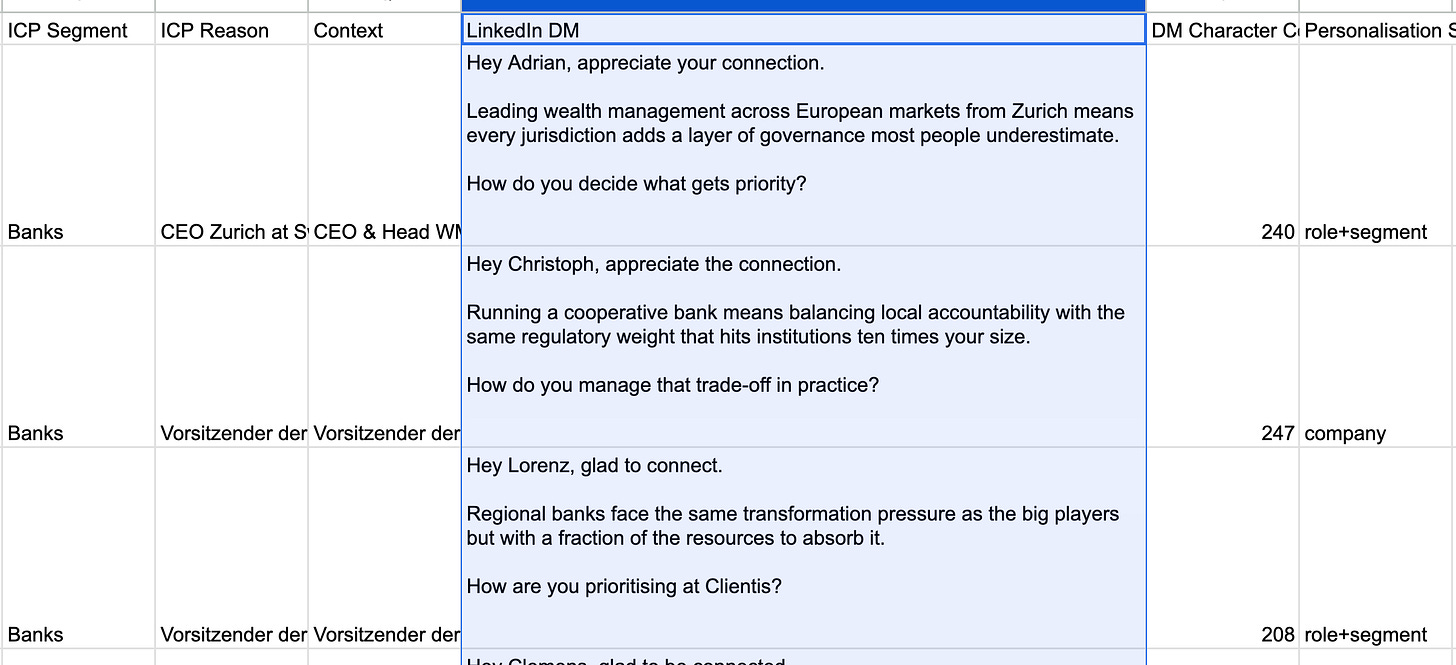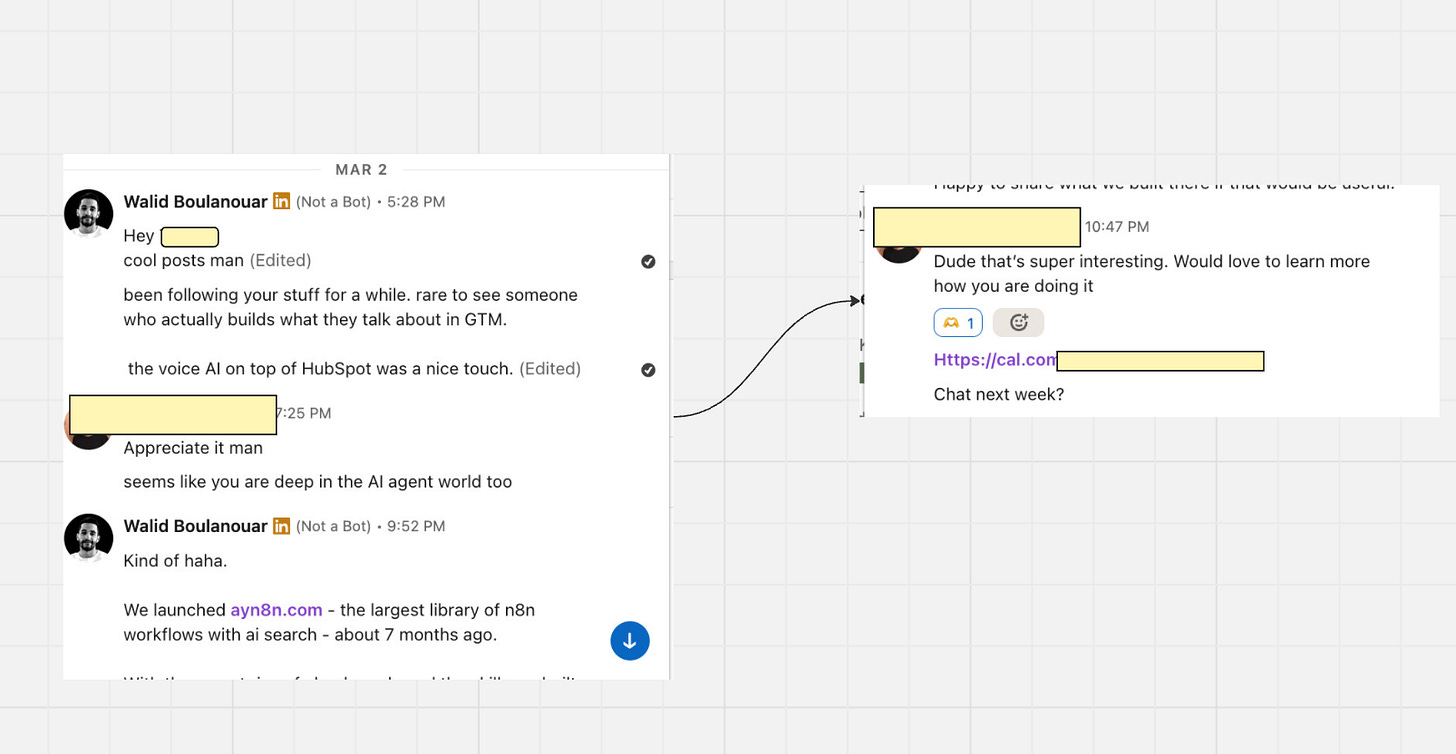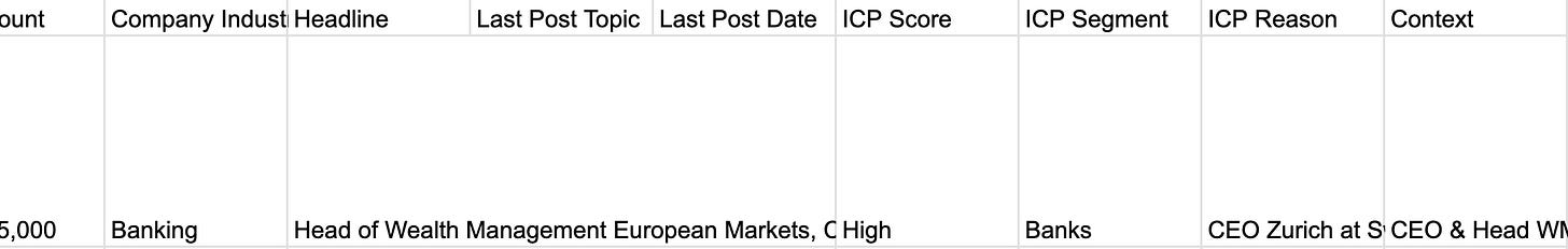 Then it tracks engagement throughout the day. When someone comments something interesting, it flags it. When a prospect from my ICP engages, it pulls their profile, scores them, and drafts a DM. I review and send.