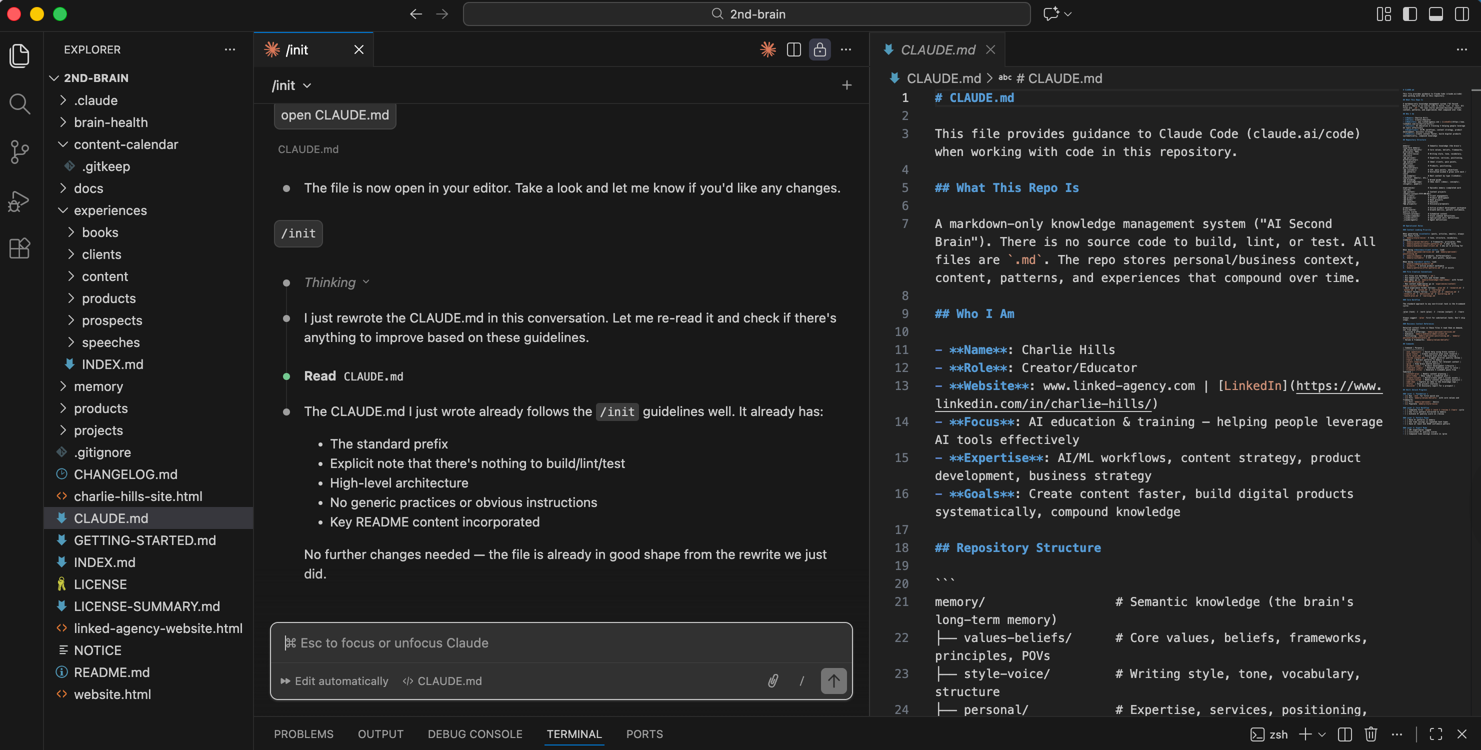 /init — generate your first CLAUDE.md automatically