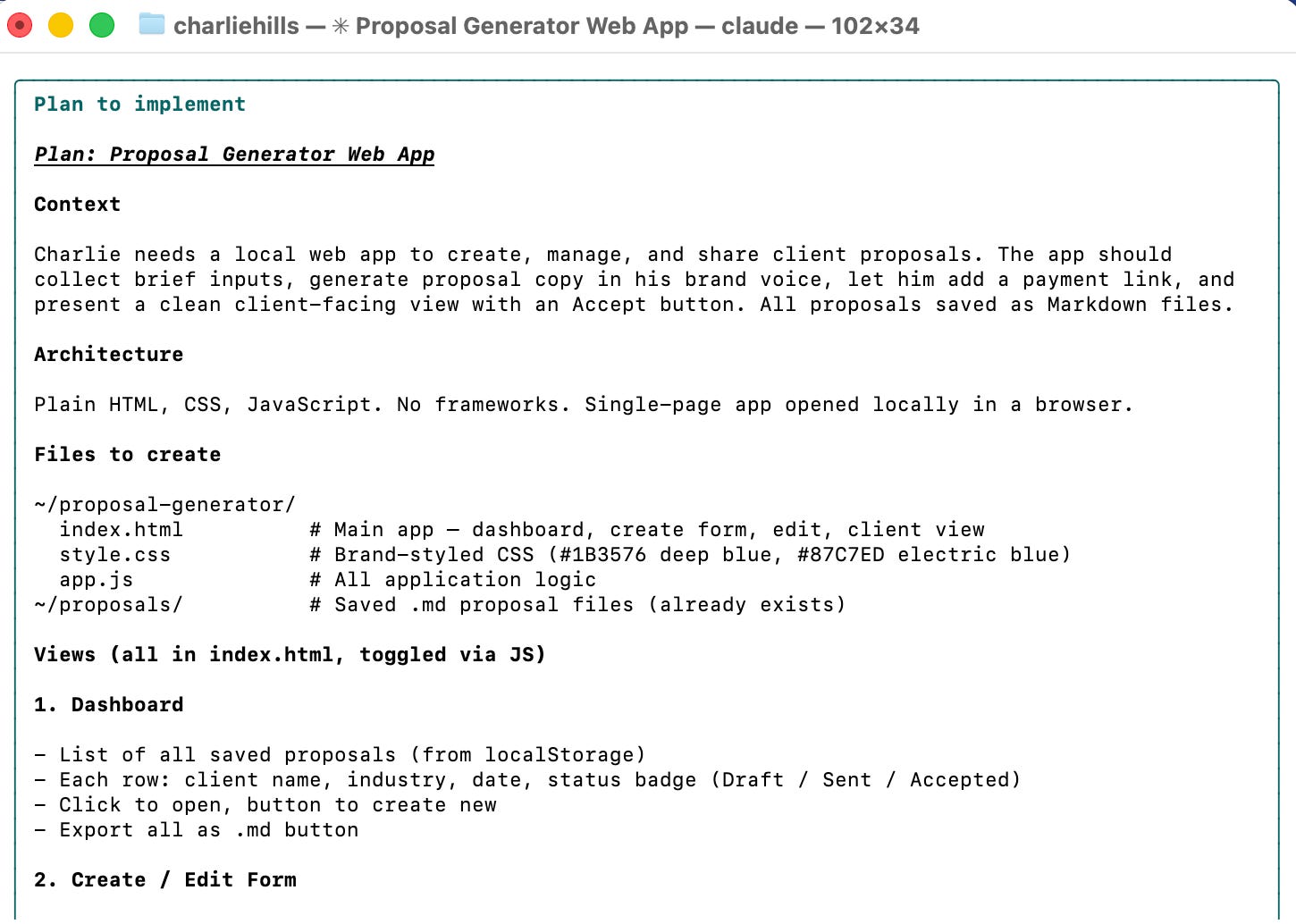 When a prospect is ready to buy, I generate a full proposal. Branded, in my voice, with their specific use case, ROI calculations, and pricing options. The proposal generator Charlie showed you as a concept, I use it weekly. It is one of the skills that paid for the entire system on its own.