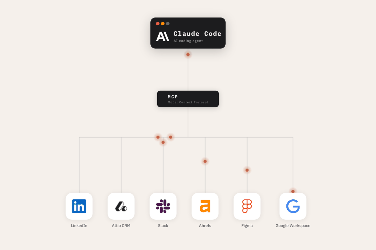 I have Claude Code talking to my LinkedIn, my CRM, my Slack, my Google Workspace, my Ahrefs, my Notion, my Figma. All at the same time.