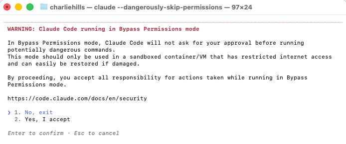 This is where most experienced users end up for knowledge work. The risk is real but low if you work in a non-critical folder. There was a widely shared incident where someone running bypass permissions on a Linux machine lost data. The command was valid. The context was wrong. Use with awareness.